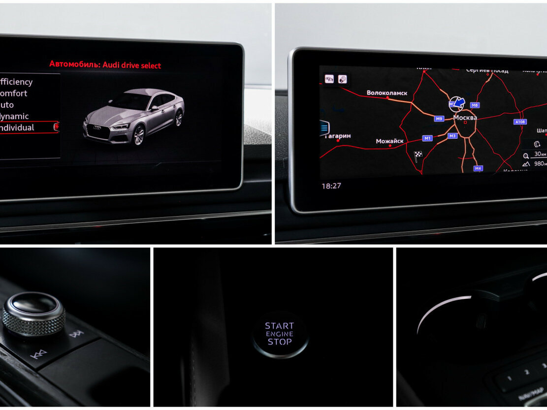 Audi A5 оснащён двигателем Бензин 2.0 л, КПП — Роботизированная, привод — Полный, кузов — Лифтбек.